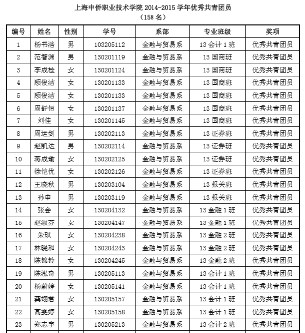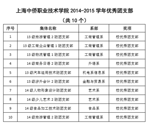 2015005关于表彰2014-2015学年上海中侨职业技术学院五四表彰的决定