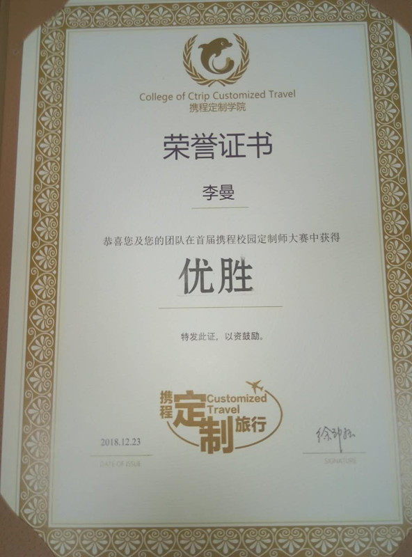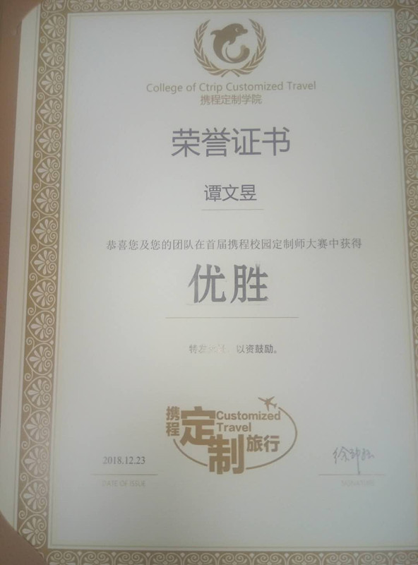 由中侨学院旅游管理专业提议发起的的携程校园定制师大赛于20181223日在携程旅行网总部圆满结束,此次大赛由携程旅行网定制旅行部主办,历时三个月。