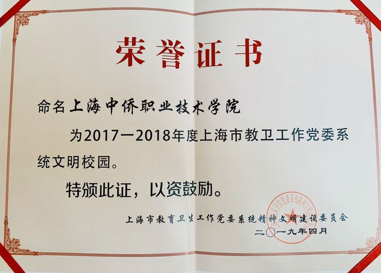 我校获2017-2018年度上海市教卫工作党委文明校园称号