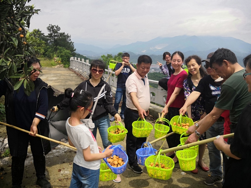 在村长的带领下,沿途给大家就该村建设的历程、取得的成效以及未来的发展等方面的介绍,通过观光农业,听取了关于蔬菜制种高效农业示范园的介绍。看着满山遍野的枇杷,党员老师们跃跃欲试,都纷纷出动,开始忙活起来上山采枇杷,亲自感受亲自采摘的喜悦,长期待在城市的老师们表示,适时的亲近大自然是一种非常放松的方式。在团队协作采摘的过程中,同时也更加增进了党组织内部同志们之间的相互沟通与交流。