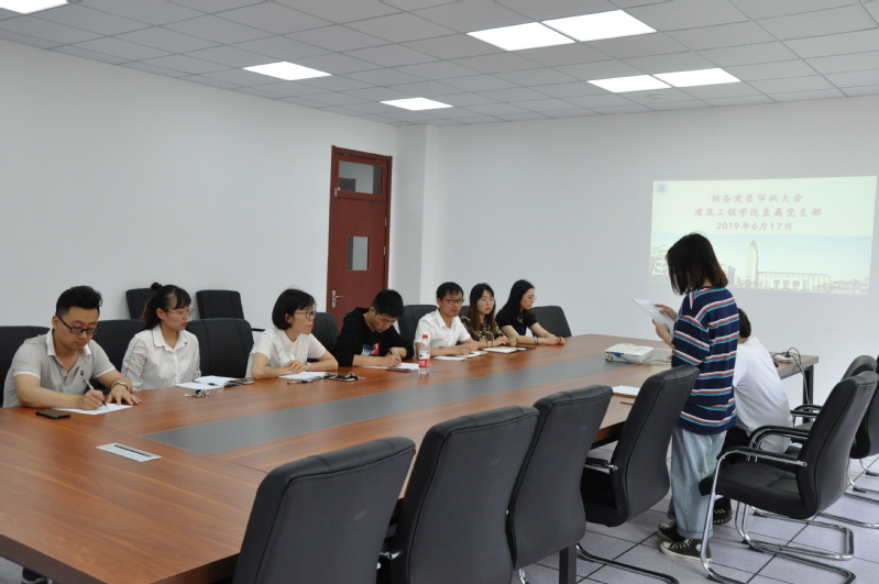 2019年6月17日,建筑工程学院直属党支部召开全体党员大会,讨论发展对象何柯婷、陈文政等2位同志的入党问题。会议首先由发展对象宣读《入党志愿书》,然后由2名入党介绍人发言,简要向与会党员介绍了发展对象的有关情况。在党员讨论中,大家一致认为2位发展对象思想上进,要求入党动机端正,工作积极努力,成绩显著。平时能以党员标准严格要求自己,时时处处起模范表率作用。经表决,与会党员一致同意吸收何柯婷等2位同志为中共预备党员。