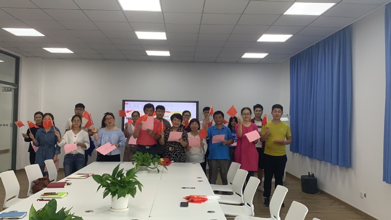 最后,全体党员老师,挥舞手中五星红旗,齐声歌唱《我和我的祖国》。信息与机电学院全体党员老师用歌声来祝贺新中国成立70周年。
