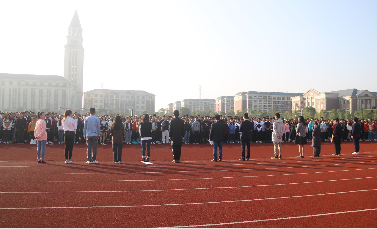 秋风拂面,晨曦微露。2019年10月24日上午8:00,经济与管理学院全体师生在操场举行新学期首次升国旗仪式。参加本次升旗仪式的有经济与管理学院副院长王殿安教授,总支部书记石成玉老师,党总支部副书记郭骏老师,全体辅导员老师及全体经济与管理学院同学,升旗仪式由石成玉老师主持。