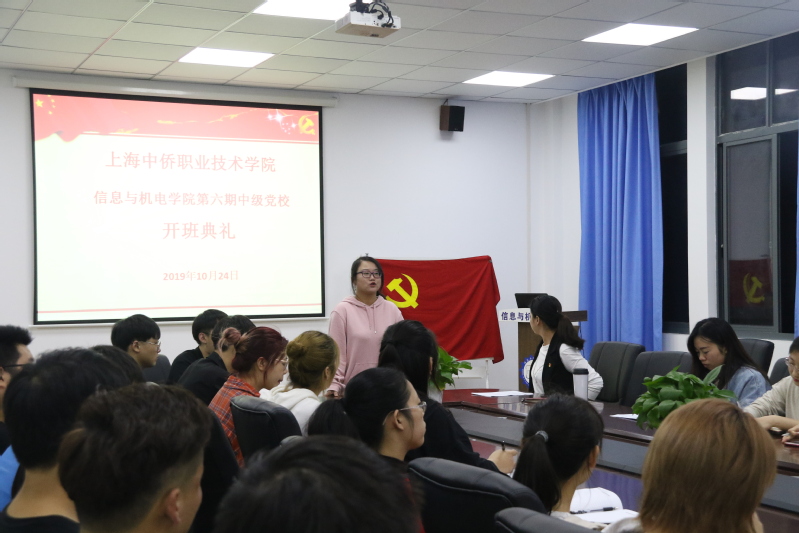 在第二期“不忘初心 牢记使命”主题教育活动开展之际,2019年10月24日18:00,信息与机电学院第四期分党校第六期中党开班典礼于9号楼306教室举行。信息与机电学院党总支书记刘群老师、党总支组组员胡婉君老师、本次培训班班主任赵淑静老师、全体辅导员以及35名培训学员参加了仪式。仪式由胡婉君老师主持。胡婉君老师为大家介绍了出席本次开班仪式的各位嘉宾后,伴随着庄严的国歌声,仪式拉开序幕。