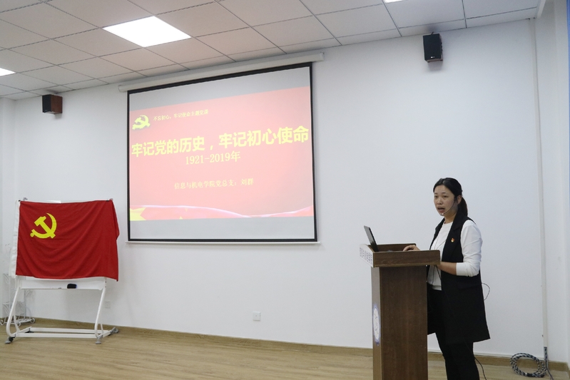 2019年10月24日晚上18:30,第四分党校第六期入党积极分子培训班第一次党课在9号楼306室顺利举行。本次党课的主讲人是信息与机电学院党总支书记刘群老师,主题为《铭记党的光辉历程,不忘初心奋勇向前》。