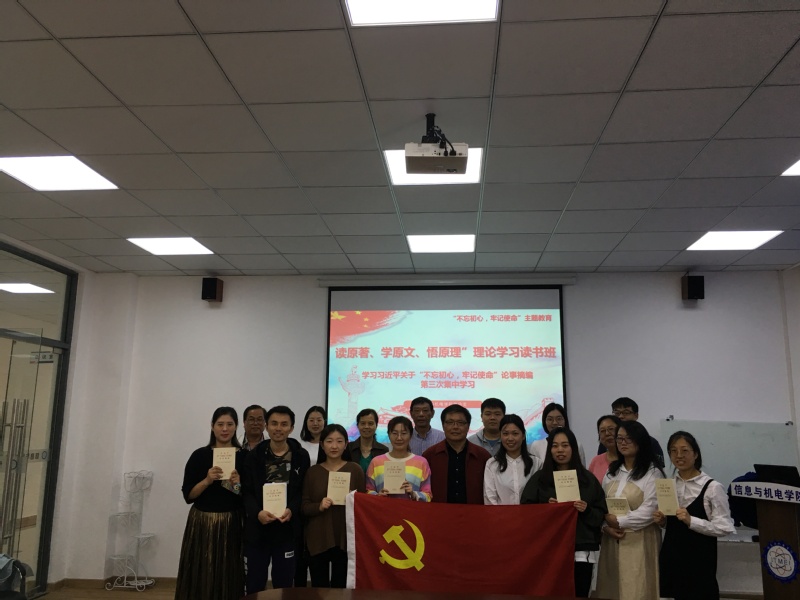 本次理论学习是信息与机电学院“不忘初心、牢记使命”主题教育活动之一,大家纷纷表示收获颇丰,不仅弥补了理论知识短板,更对初心和使命有了新感悟和新思考,表示要继续加强理论学习,勇于担当,甘于奉献,务实进取,为学院和学校发展贡献力量,为实现中华民族伟大复兴的中国梦不懈奋斗。