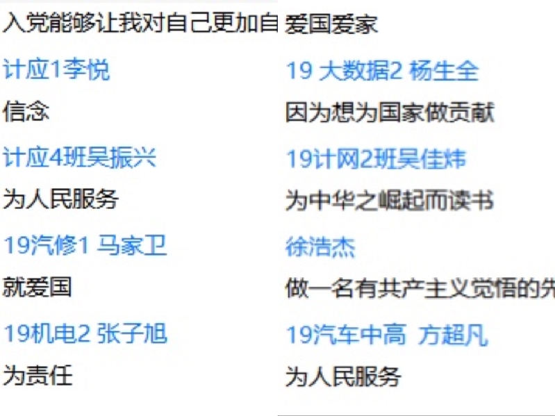 尊重历史,立足现在,放眼未来,这次的党课培训让大家再一次感悟到中国共产党的伟大。本次党课让165余名积极分子对党的辉煌历程有了全新的认识。让各位积极分子对党的辉煌历程都有了更加深刻的了解,也使同学们更加坚定了信念,积极向党组织靠拢,跟着党走。