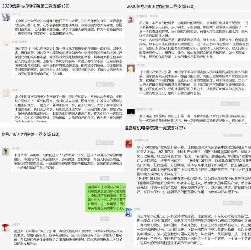 通过学习,支部其他同志作交流发言,一致认为要通过“四史”学习教育,深刻认识红色政权来之不易、新中国来之不易、中国特色社会主义来之不易,深刻认识我们党先进性、以史为镜,做到不忘历史、不忘初心,知史爱党、知史爱国。