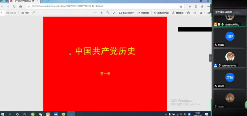 大家作为党员学“四史”,希望去想一想作为共产党员,到底应该怎么做?再包括我们学习疫情期间共产党员的牺牲奉献,我们在线的这些同学,不仅是共产党员,还有很多团学干部、班级干部,最近团委在主要推进青年大学习,大家是否有起到带头、负责作用?在日常学习、团学班级工作中、健康数据统计、就业等工作中,是否也去听从老师、学校的要求,主动去承担或者做好?希望大家能够不忘初心,以史为鉴,不论是作为学生还是作为职员,都能做到一个党员的担当和责任,为国家和人民创造美好的未来。
