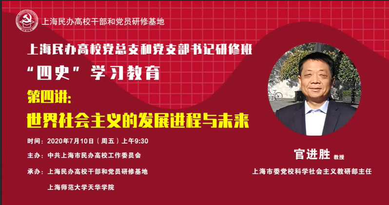 7月10日上午,信息与机电学院党总支组织师生党员、入党积极分子参加了由官进胜教授主讲的主题为“世界社会主义的发展进程与未来”的线上讲座,大家受益匪浅。