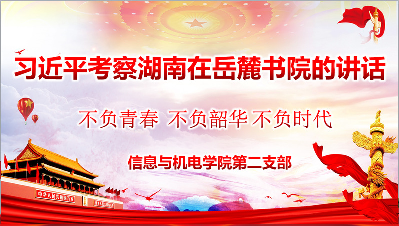 2020年9月23日17:30信息与机电学院第二党召集全体师生党员、预备党员和拟发展对象在9号楼306召关于开习近平总书记考察湖南在岳麓书院勉励青年学子的讲话精神,勉励广大青年学子不负青春不负韶华不负时代。