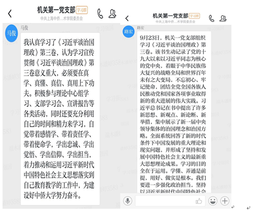 2020年9月23日机关第一党支部组织开展《习近平谈治国理政》第三卷读书学习活动,会议由机关第一党支部书记王凌老师主持,每位党员提交了学习《习近平谈治国理政》第三卷的感悟心得。