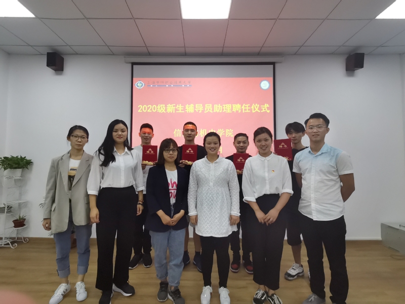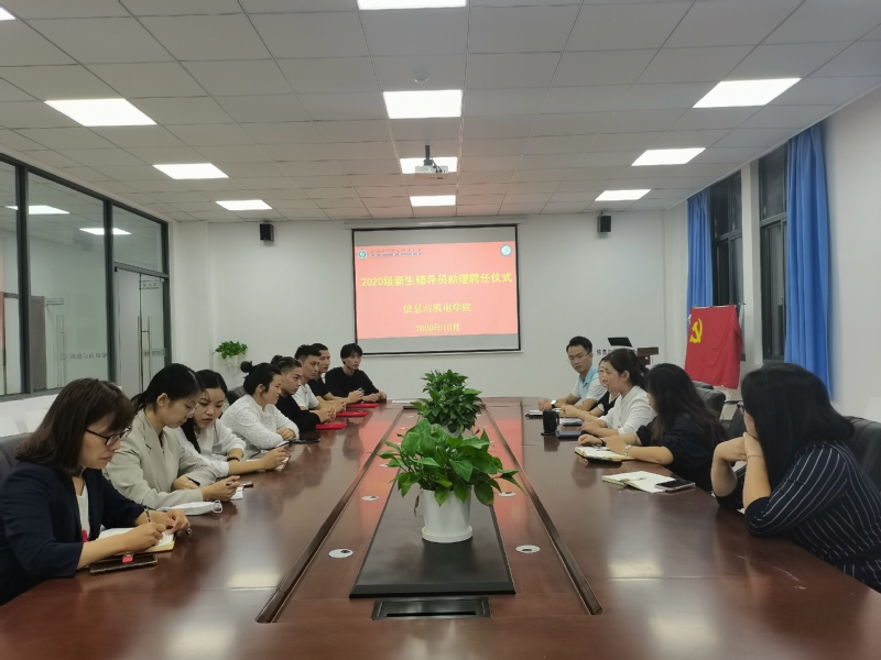 为加强学院引领新生筑建党风严谨、品行优良的学习氛围,发挥好辅导员助理、导航学长引领示范作用,10月12号晚上信息与机电学院9号楼306室举行2020级辅导员助理聘任仪式。党总支书记刘群,学院全体辅导员以及4位辅导员候选人参加的此次会议。会议由学院第二党支部书记胡婉君老师主持。