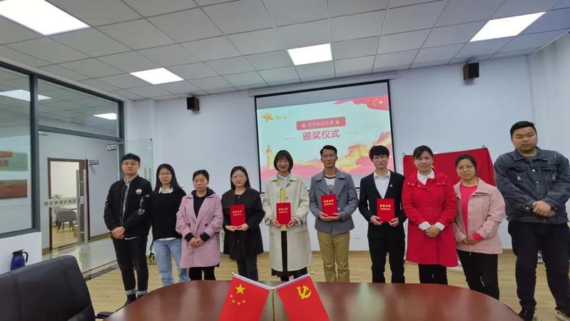 竞赛过程中,全体支部成员准备充分、应变灵活,充分展现成员丰富的党史知识。他们沉着应答,分秒必争,现场气氛紧张有序,成员积极表现,踊跃答题。经过一番角逐后,比赛落下帷幕,最终高徐辉老师荣获一等奖,薛飞老师荣获二等奖,游婷、杜梦圆、张云华等老师均荣获三等奖。颁奖结束后,全体参与人员合影留念,为本次竞赛画上了圆满的句号。