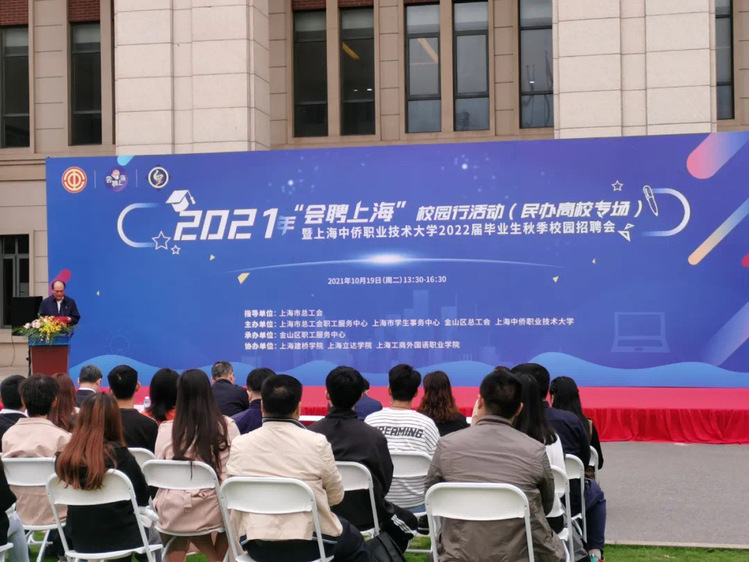 10月19日,由上海市总工会指导,上海市总工会职工服务中心、上海市学生事务中心、金山区总工会、上海中侨职业技术大学联合主办的2021年“会聘上海”校园行活动之民办高校专场在上海中侨职业技术大学举办。