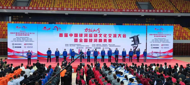 在举国上下共同庆祝新中国成立72周年之际,全国拔河运动精英,业内拔河运动专家,汇聚有“诗城”之称的安徽马鞍山市,共同参与本次中国拔河运动的盛会。中国拔河协会、上海中侨职业技术大学、武汉体育学院、北京市拔河协会、马鞍山市人民政府等相关单位领导,全国36支代表队、370余名运动员、教练员、裁判员,中央电视台体育频道、中国体育报等媒体记者出席了开幕式。据悉,本次大会将以“拔河文化”为主题,在10月23-24日的两天时间内,主办单位将举行拔河训练现场交流、全国拔河精英比赛、传统拔河展演活动、拔河运动文化艺术展评活动之短视频征集大赛、首届中国拔河运动文化交流大会、全国拔河运动学术研讨会等6个特色活动,全面展示新时期拔河项目发展新成果。
