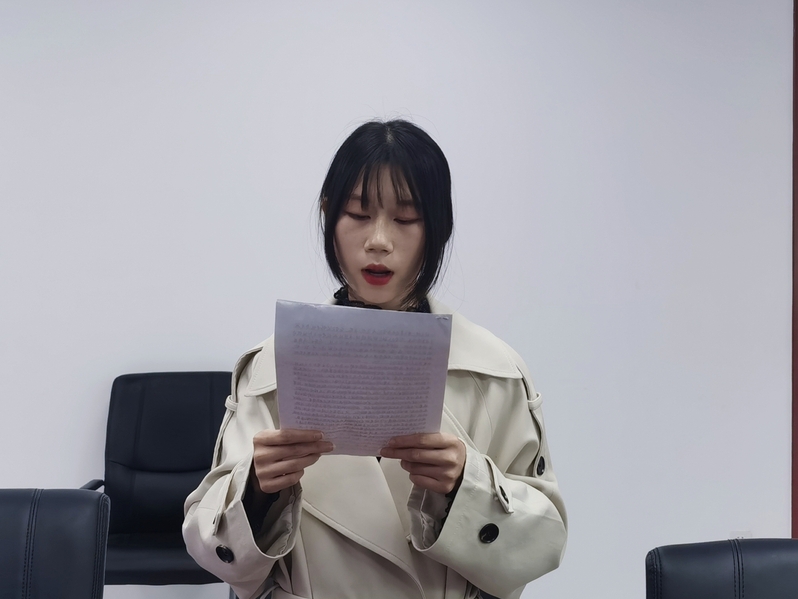 首先,由审批对象陈悦怡同学对自己在预备期内的工作、生活、思想、学习等情况做出汇报,接着由她的辅导员老师孙靖和专业课老师孙博文向全体党员介绍该同志的表现情况,并分别对她进行客观评价,最后向她提出了意见和建议。