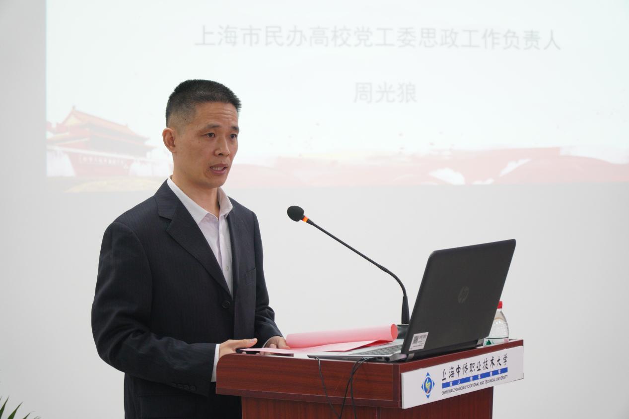 上海中侨职业技术大学党委书记平杰,上海市延安精神研究会会长叶骏,上海市民办高校党工委思政工作负责人周光狼,上海市延安精神研究会理事单位代表,上海市主要高校马克思主义学院专家学者,媒体主编,上海中侨职业技术大学马克思主义学院院长、副院长、直属党支部书记、教师及学生代表参会并进行研讨。