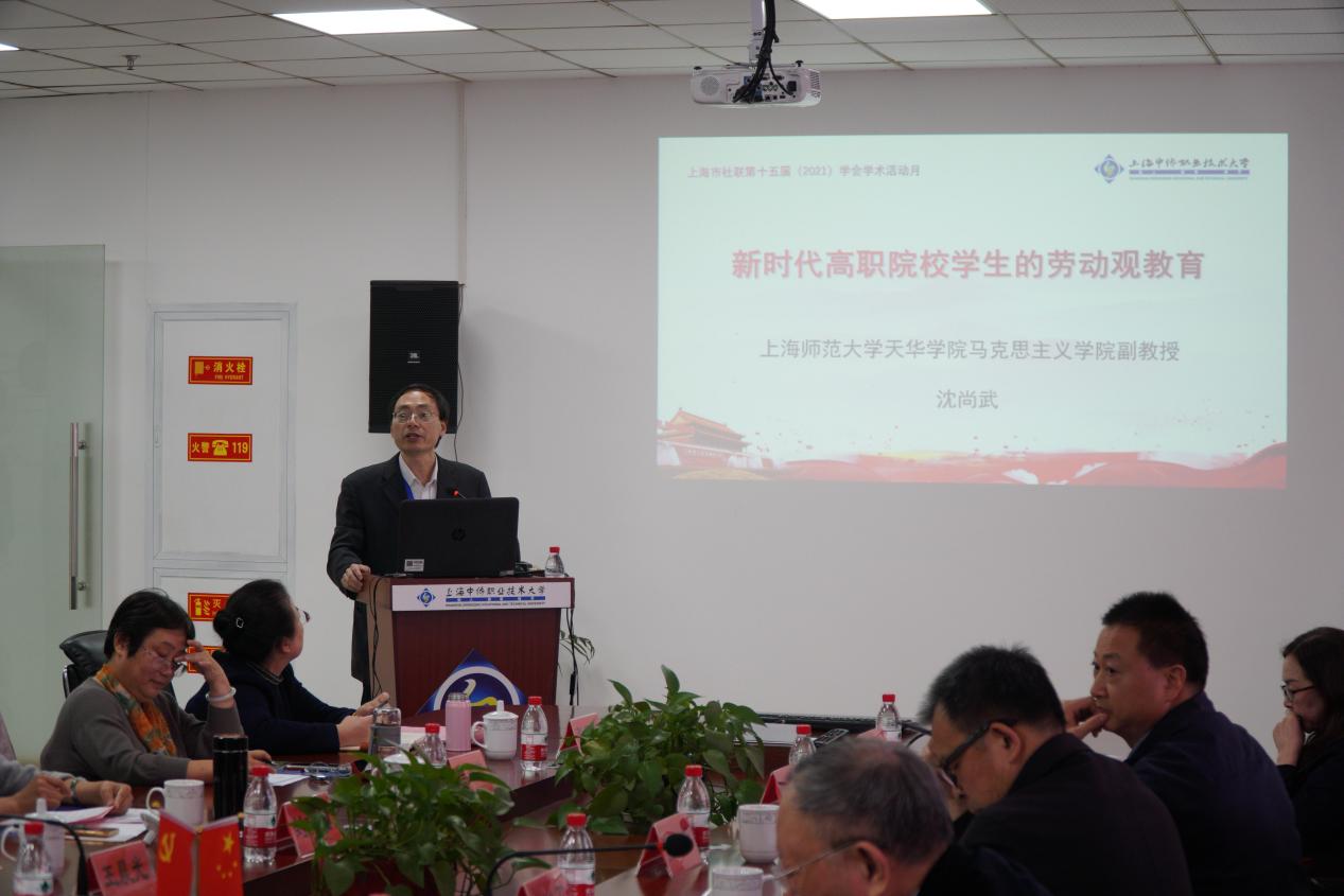 上海师范大学天华学院马克思主义学院沈尚武副教授以“新时代高职院校学生的劳动观教育”为题,从劳动的真理观、劳动的价值观、劳动育人观、劳动精神观、劳动幸福观五个方面,阐述了马克思、恩格斯对劳动及其劳动价值观给予我们的重要启示。