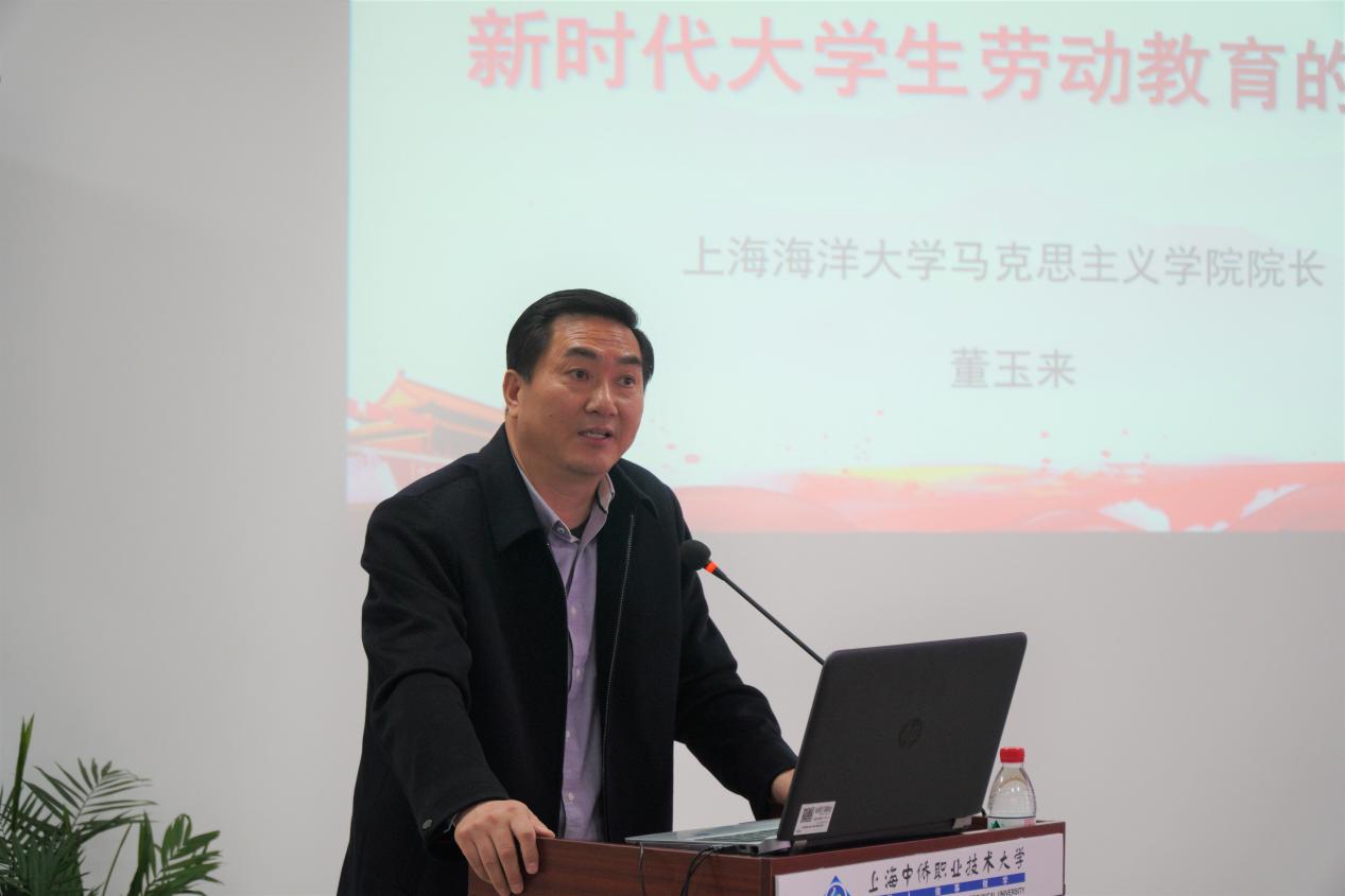 上海海洋大学马克思主义学院院长董玉来教授以“新时代大学生劳动教育的思考”为题,针对现今高校学生劳动教育评价存在的问题,提出了系统性的建议与设想,将“以劳树德”、“以劳健体”,“以劳增肌”,“以劳增智”,“以劳塑美”相融合,引导师生树立正确的劳动观,助力培养德智体美劳全面发展的新时代社会主义接班人。