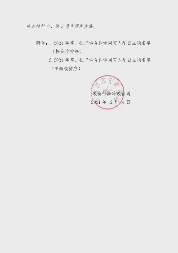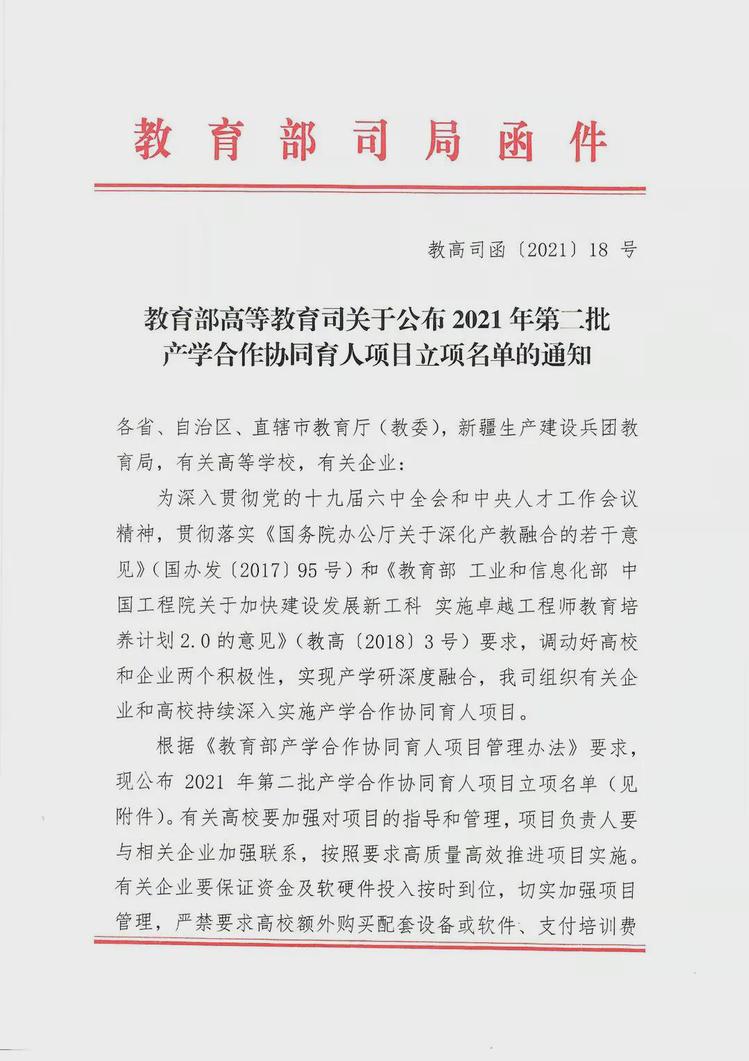 12月14日,《教育部高等教育司关于公布2021年第二批产学合作协同育人项目立项名单的通知》正式印发。我校《基于创新型信息工程实训中心信息化能级提升项目》入选教育部2021年第二批产学合作协同育人项目立项!