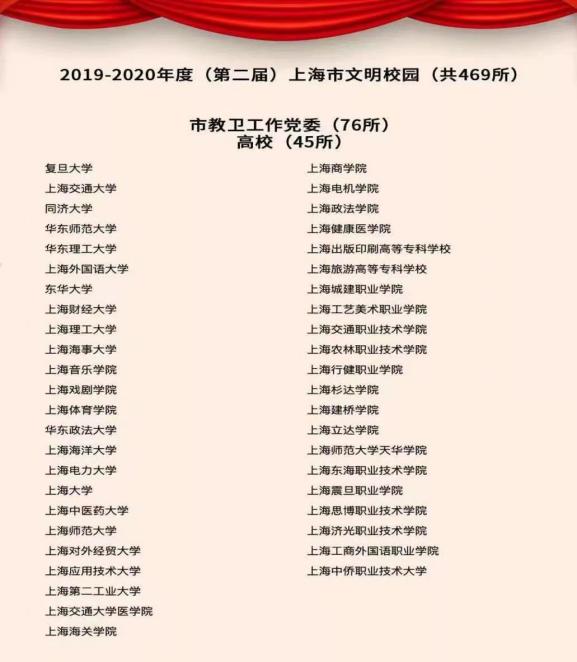 2021年4月,上海市文明办公布2019-2020年度上海文明城区、文明行业、文明单位、文明校园名单。上海中侨职业技术大学被评为2019-2020年度(第二届)上海市文明校园,市级“文明校园”建设工作是学校高质量发展的基础,也是全体中侨人的愿景,更是助力学校事业改革发展的内生动力。