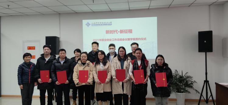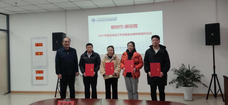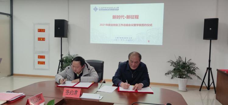 为保障2022年就业工作落实落细,会上进行了二级学院签约。