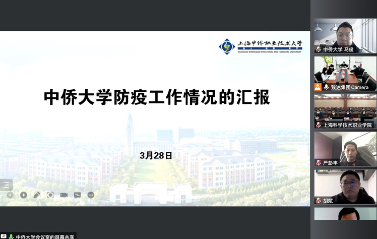 3月28日上午,我校参加致达集团召开的两校防疫工作专题会议。校党委书记平杰在会上传达了市教委近期多次召开的关于高校疫情防控专题会的会议精神,以及3月24日市政府疫情防控工作视频调研会上提出的整改意见,并对我校准封闭管理期间的相关工作进行汇报。我校严格按照疫情防控准封闭管理工作方案,从严、从细、从实、从紧落实校园安全、教育教学、人文关怀、学生管理、后勤保障、网络运维、舆情引导等工作,继续守护好校园安全稳定和师生健康防线,做到守土有责,守土尽责,众志成城,共克时艰。