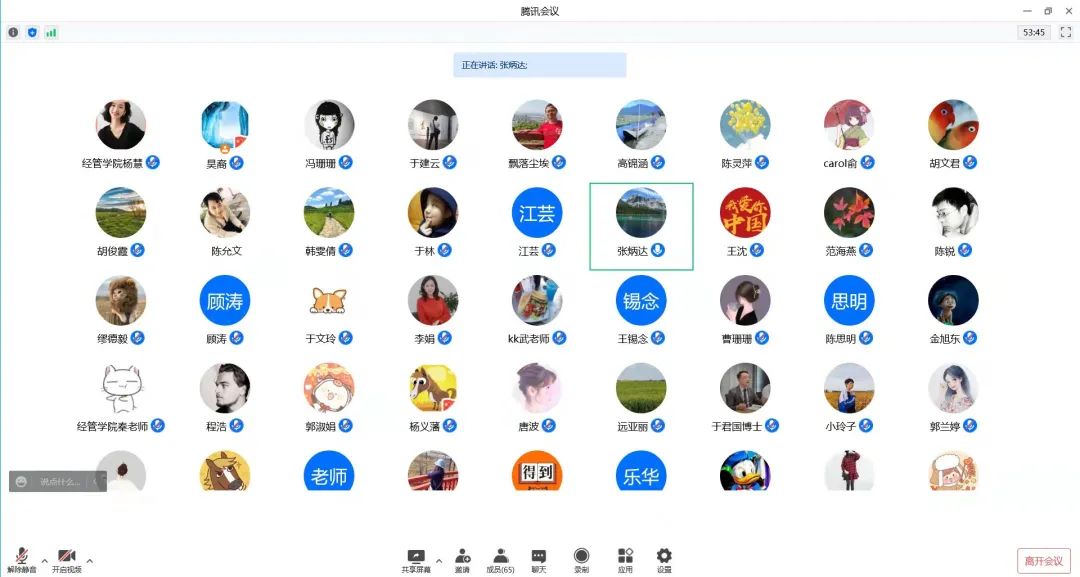 最后,张炳达院长作了总结讲话。他指出,疫情是坏事,但是也为我们带来了机会。教师们居家办公虽然很压抑,但却节省出每天往返学校的交通时间。我们可以利用这些时间开展教研活动,做一些自己喜欢的事情。建议学院的例会每周召开一次,下一次的学院例会可以考虑安排如下研讨议题:(1)国际认证;(2)本科整改;(3)绩效考核;(4)招生工作。请有关老师做一些准备,在会上进行交流发言。张院长还对学院领导班子成员和部分骨干教师的工作分工做出了进一步明确。最后,张院长特别强调了疫情防控工作,要求学院广大师生对疫情防控一刻也不能放松,坚持不犹豫、不懈怠、不动摇,坚决打赢疫情防控攻坚战,直到取得疫情防控的最后胜利。