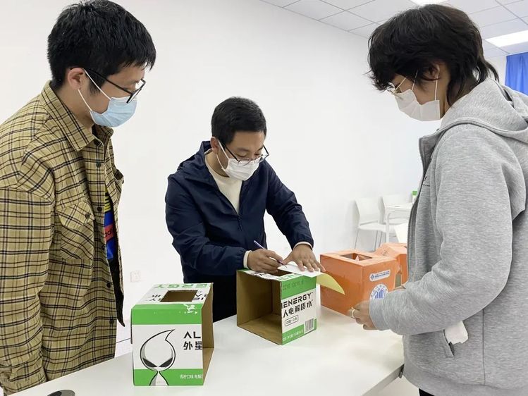 次日核酸检测开始前,任子琦、武汶佳和学生干部魏献法联系核酸检测登记工作人员,将自己的“扫码箱”做了简短介绍。登记工作人员看到“扫码箱”非常的惊喜,急忙放置在几个扫码点尝试使用。在光线强的室外固定好“扫码箱”,师生只要把手机放在指定位置,扫码速度明显加快,不需要再找角度、找距离,切实提升了扫码工作效率。据悉,今日核酸检测时间较昨天缩短时长约1.5小时,在气温逐渐升高等情况下,极大的缩短了全员核酸检测时间,提升了检测效率。“这小发明真是太厉害了!”“大白”和师生们交口称赞,小小“扫码箱”得到防疫人员、志愿者们和参与核酸检测师生的一致好评。4月7日在校的辅导员孙靖和20土木本科班学生王丹楠也共同参与到升级版“扫码箱”的制作,通过几个小时的努力,终于在一片欢声笑语中结束此次升级制作。