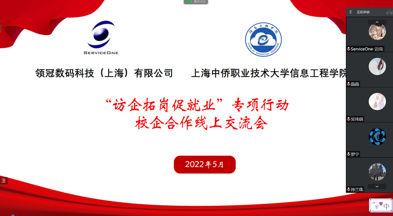 为贯彻落实党中央、国务院关于高校毕业生就业工作的决策部署,积极应对新形势下的就业压力,更好的发挥市场作用促进毕业生就业,5月5日下午,中侨大学信息工程学院与领冠数码科技(上海)有限公司开展“访企拓岗”专项行动线上交流会。