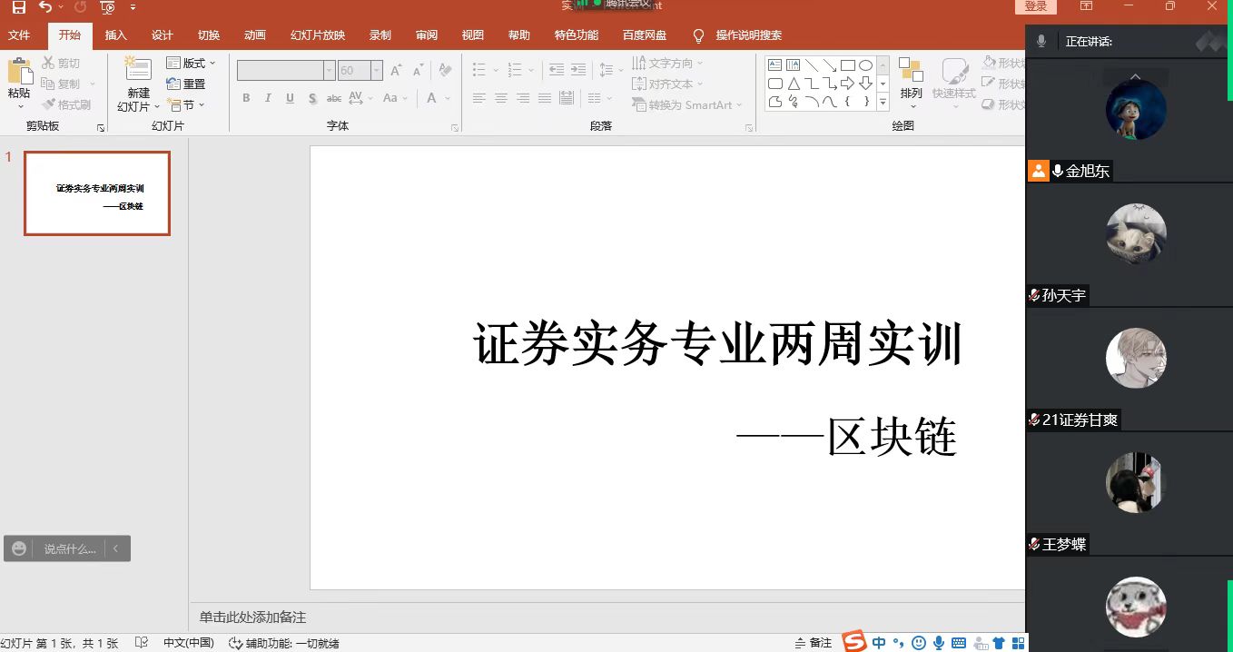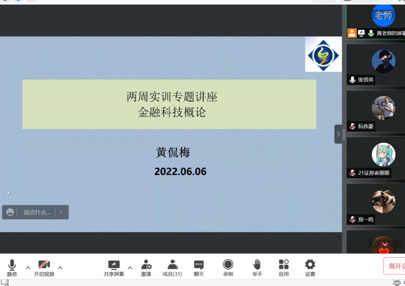 此次实训主要内容分为三大模块:奇获杯金融科技挑战联赛、区块链基础实训和数字人民币实训。本次实训与福建奇获科技公司、北京知链科技有限公司共同开展校企合作,合力培训20级和21级证券学生。本次实训采用腾讯会议线上培训的形式,证券实务专业黄老师、金老师、谭老师为本次实训的指导老师。本次实训通过各模块的基本知识、原理、架构和基本使用方法等进行讲解,通过应用场景体验、命令实验、任务交互来完成整个课程的学习,使学生由浅入深理解基本概念,掌握实训课程。