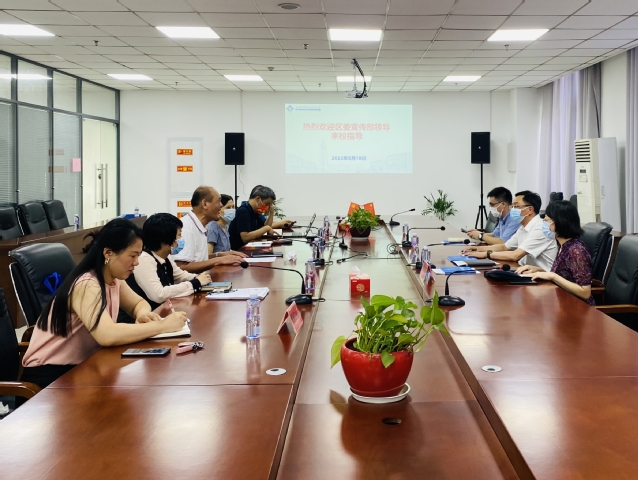 8月18日下午,金山区委常委、宣传部长金正斌、宣传部副部长赵俊华到我校调研,学校党委书记平杰,党委副书记管琰琰,副校长周晓芳出席调研座谈会,书记助理、学工部部长朱范鑫、党政办主任、宣传部长马俊,艺术学院党支部书记戴红梅参加会议。