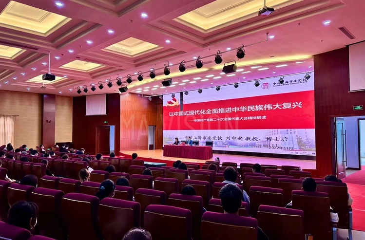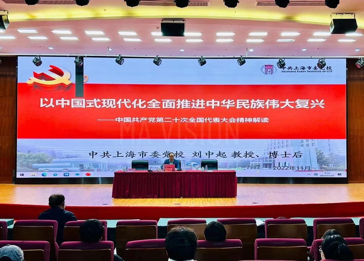为深入学习党的二十大报告精神,2022年11月25日,上海中侨职业技术大学于图文楼2楼报告厅开展“以中国式现代化全面推进中华民族伟大复兴”党的二十大报告精神解读主题讲座。中共上海市委党校教授、博士后刘中起,中侨大学校党委书记平杰,党委副书记、副校长管琰琰、党员教师、学生党员共同参与。由中共上海市委党校刘中起教授担任主讲人,管琰琰副校长担任会议主持。