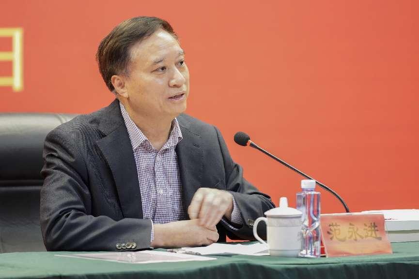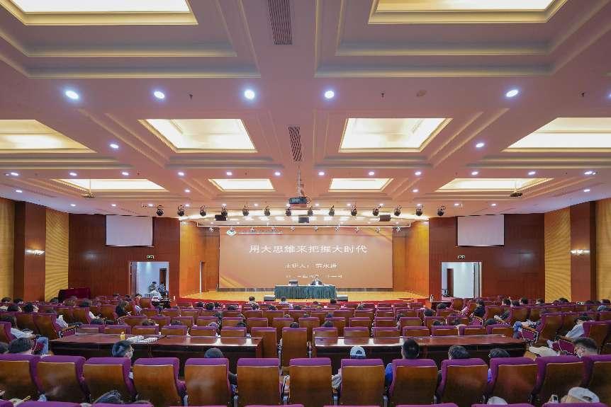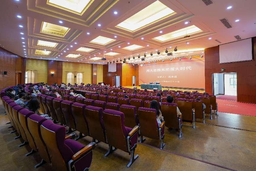 捐赠仪式结束后,范永进书记面向全体师生作“用大思维来把握大时代”主题讲座,用建党伟业“开天辟地”、新中国成立“改天换地”、改革开放“翻天覆地”、伟大复兴“惊天动地”来概括党的百年奋斗史,从而生动地阐述了“大时代”“新时代”的具体内涵。范书记的讲座以丰富的国内外案例,强调要心怀“国之大者”,不断提高政治判断力、政治领悟力、政治执行力,坚定对马克思主义的信仰,对社会主义、共产主义的信念,对实现中华民族伟大复兴中国梦的信心。同时,范永进书记还通过讲述自身经历,提出“读万卷书,行万里路”,强调在重视读书的同时也要注重理论联系实际,自觉躬身实践,并呼吁大家要在新时代新征程中展现新气象新作为,谦虚谨慎、戒骄戒躁,艰苦奋斗、锐意进取,奋勇争先、建功立业,为实现中华民族伟大复兴贡献力量。
