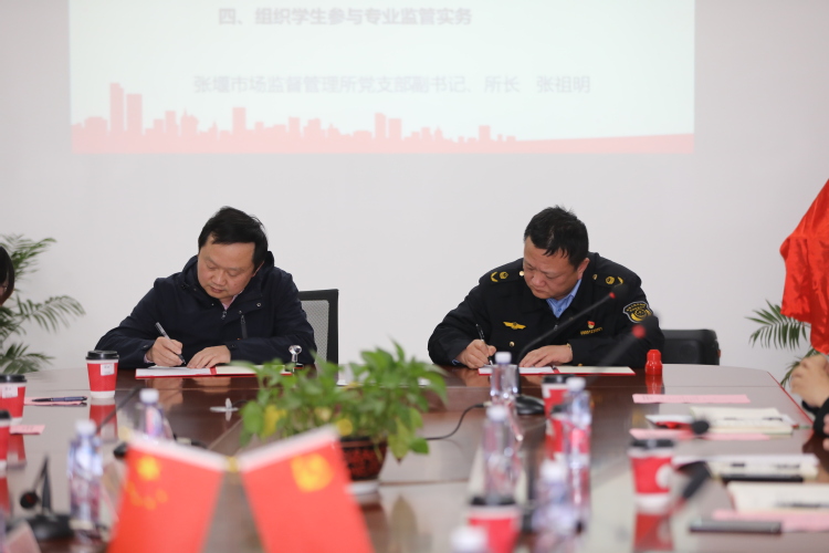 与张堰市场监督管理所党支部书记王继军进行结对合作签约)