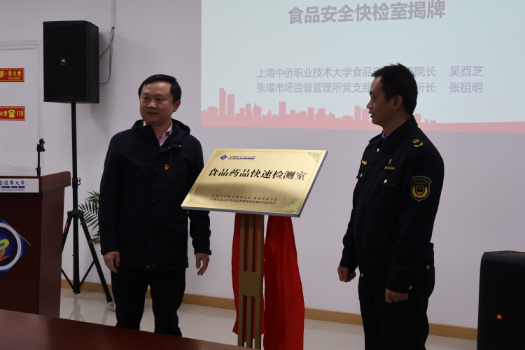 与张堰市场监督管理所党支部副书记、所长张祖明为食品药品快速检测室揭牌)