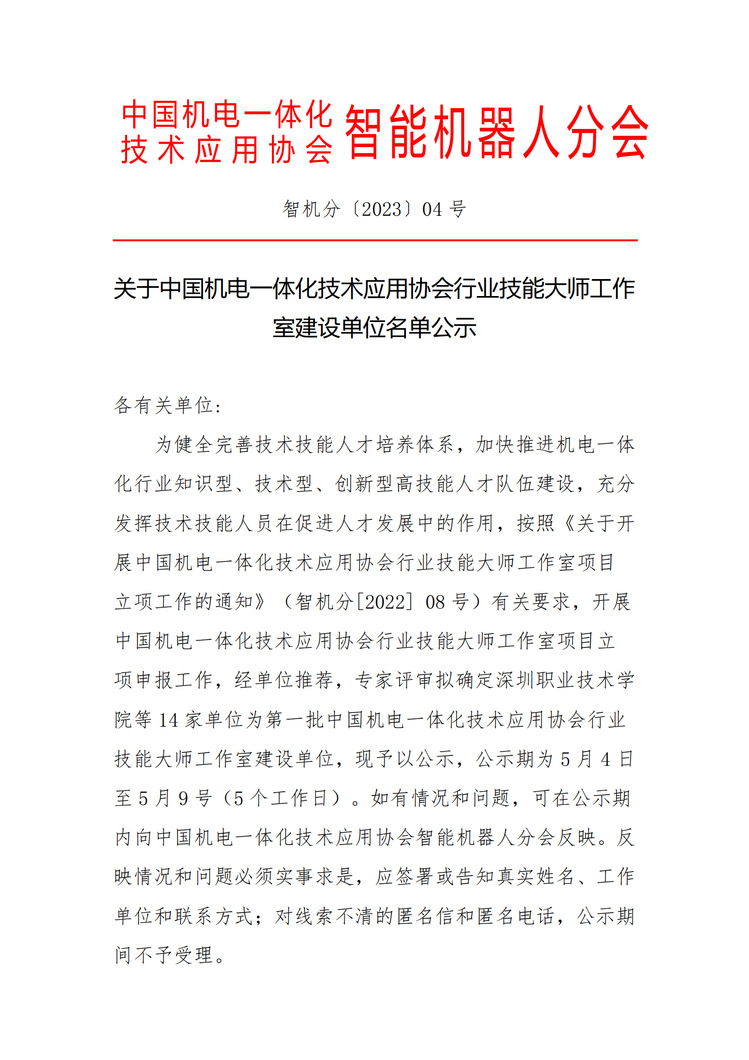 上海中侨职业技术大学获批第一批中国机电一体化技术应用协会行业技能大师工作室建设单位