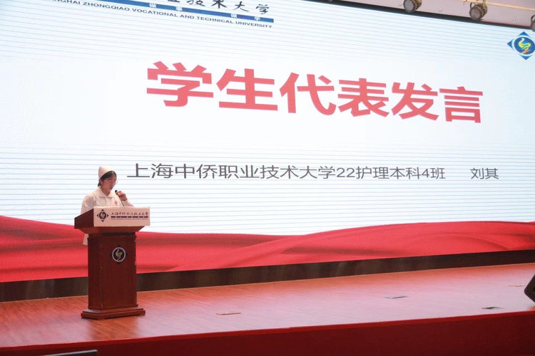(中侨大学护理与健康学院见习学生代表刘其发言)