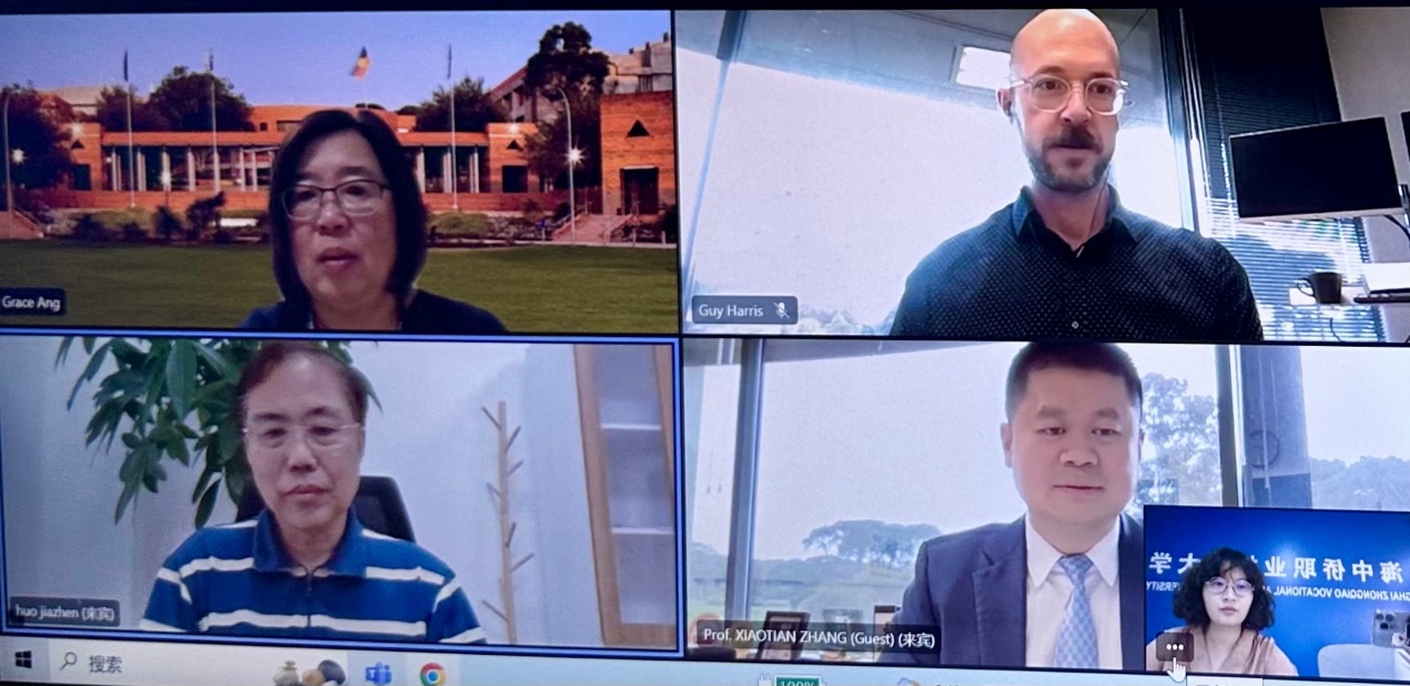 2023年7月13日下午,上海中侨职业技术大学与澳大利亚科廷大学(Curtin University)召开合作交流研讨会,上海中侨职业技术大学校长霍佳震、国际教育学院院长严蕙、国际交流处处长王凌,澳洲科廷大学全球协理副校长张啸天教授、全球伙伴关系经理Guy Harris、全球伙伴关系高级顾问Grace Ang出席会议。