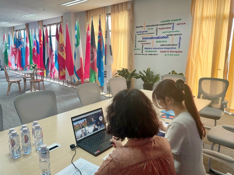 中侨大学校长霍佳震和科廷大学副校长张啸天分别就各自学校的办学情况、专业优势、发展战略等方面做了详细介绍,随后双方就两校进一步可开展的合作内容展开了热烈的讨论。霍佳震校长提出,中侨大学专科阶段学生在完成3年专科学习后,在本校继续攻读1年中侨大学与澳洲科廷大学的合作课程,再赴澳洲科廷大学攻读1年本科课程,以3+1(国内)+1(国外)的模式帮助学生完成专升本;本科阶段学生在完成4年本科学习后,在本校继续攻读1年中澳合作课程,再赴澳洲科廷大学攻读1年硕士课程,以4+1(国内)+1(国外)的模式帮助学生完成本升硕,合作课程经过双方学分认可,师资队伍由双方共同承担,该模式能大幅节省学生海外学习的时间成本和经济成本。澳洲科廷大学副校长张啸天对此做出回应,中侨大学首批学生访学团将于本月23日抵达科廷大学,这对双方开展进一步的合作与交流起到了良好的奠基作用,科廷大学非常愿意与中侨大学开展长期合作,并将全力支持霍校长提出的中澳合作办学新模式,下一步双方将就可开设的专业、课程设置、师资配备等核心合作内容进行进一步商讨和确定,两校达成共识,致力于在中侨大学成立中澳合作课程及研究中心,为双方课程、师资、科研等方面的合作搭建平台,以推动中侨大学“在地化”国际交流的建设和发展。中侨大学国际教育学院将承担中澳双方合作课程的全过程运营及管理,国际交流处配合为学生提供服务支持。最后双方相约,在2023年10月举行线下研讨会,霍佳震校长也诚挚地邀请澳方校长前来参加中侨大学30周年校庆活动。