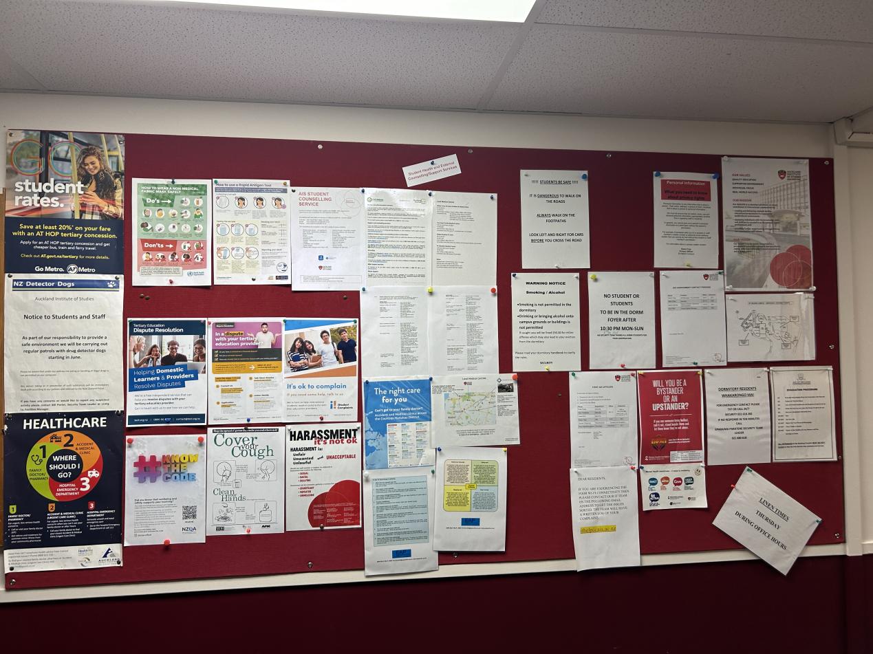 (奥克兰商学院宿舍通知栏)