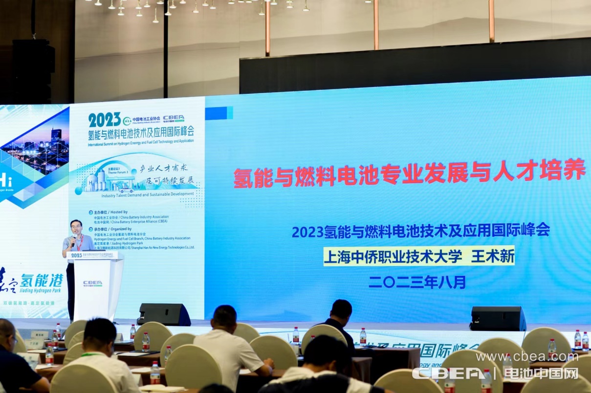 在此次大会上,王术新教授作题为《氢能与燃料电池专业发展与人才培养》的主旨报告,王术新教授将专业发展与人才培养结合起来,认为当前氢能与燃料电池产业链人才短缺,覆盖上、中、下游各个环节,虽然长三角地区的氢能产业和企业发展态势良好,但上海地区没有一所院校开设氢能科学与工程或者氢能技术运用专业,导致上海乃至长三角地区氢能产业专门人才的培养跟不上产业链的发展步伐。上海中侨职业技术大学以强化学生职业胜任力和持续发展能力为目标,采取“四链协调”+“人才培养三融合”模式,实施全过程跨学科项目化教学、产学研项目牵引“真题真做”,强化学生职业胜任力和持续发展能力培养,使学生能够掌握氢能技术专业知识与技术技能,面向氢燃料电池生产与应用、氢能源汽车服务工程等技术领域,借助新能源汽车团队师资优势,培养从事氢燃料电池装配与维护、氢能汽车动力系统装配与维修等工作的技术技能型人才,以增强学生的岗位适应能力和就业竞争能力。