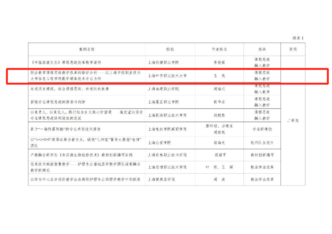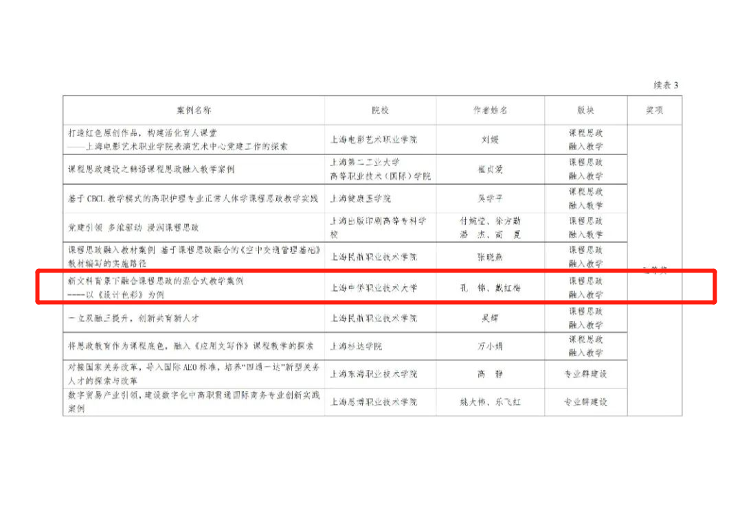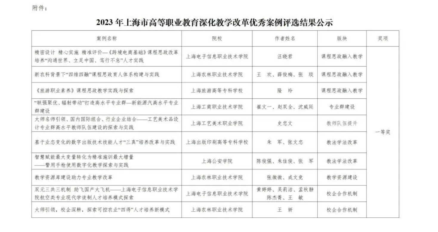在上海市教育委员会和上海市职业教育协会的指导下,上海市职业教育协会高职高专教学工作专业委员会/上海市高职高专教学研究会(以下简称:教学研究会)于2023年开展了上海市高等职业教育深化教学改革优秀案例评选,评选结果于网上公示。我校2项案例获2023年上海市高等职业教育深化教学改革优秀案例。