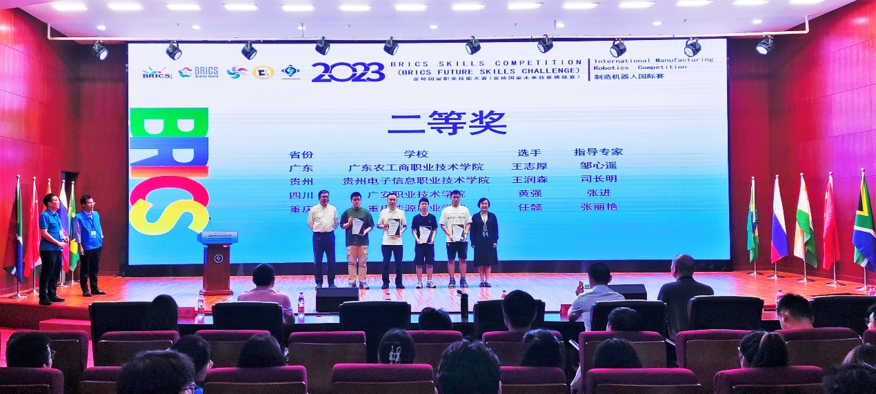 广东农工商职业技术学院、贵州电子信息职业技术学院、广安职业技术学院、重庆能源职业学院4所院校荣获二等奖。上海中侨职业技术大学副校长冯晓、副校长黄立新为二等奖获得者颁奖。