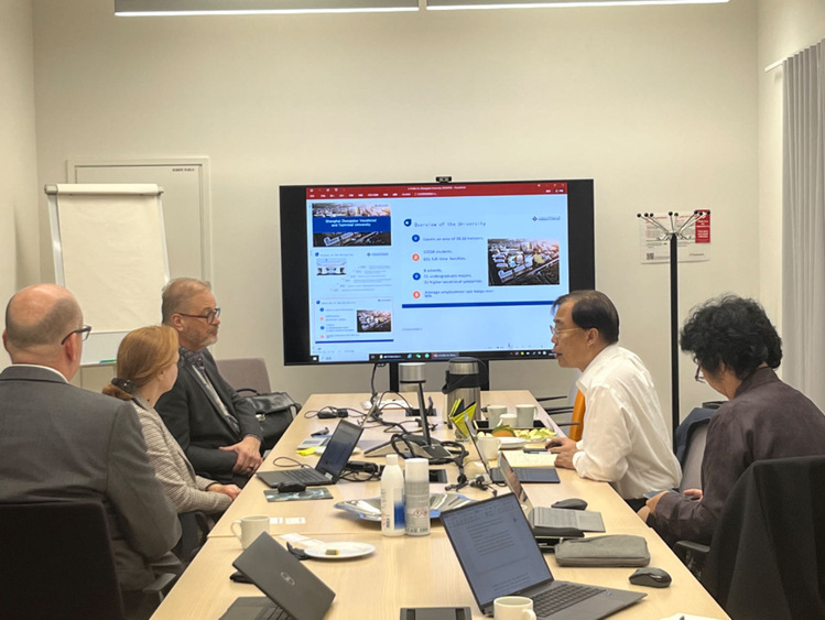 赫尔辛基城市应用科技大学是上海中侨职业技术大学的伙伴院校,这次出访目的主要是推进两校中外合作办学,代表团向芬兰代表介绍了中侨大学的优势专业领域,双方就学科发展、人才培养、高质量合作和共同发展等主题进行深入交流探讨,以期未来进一步加强合作,共同探索中芬教育领域的发展和创新。