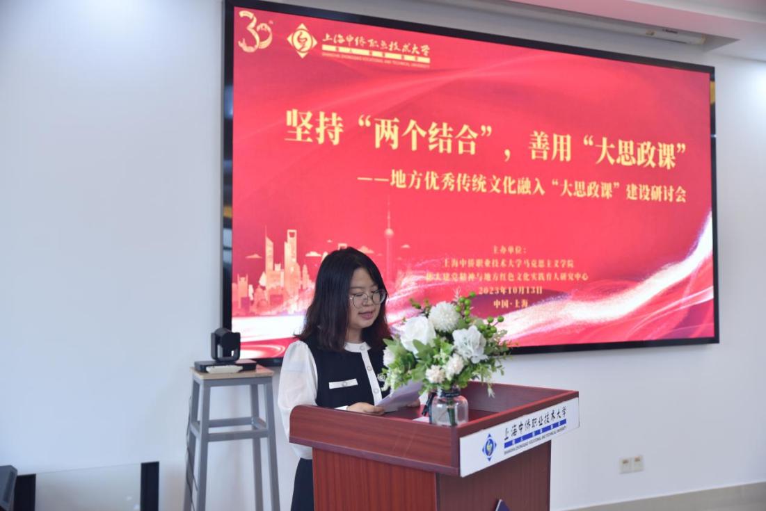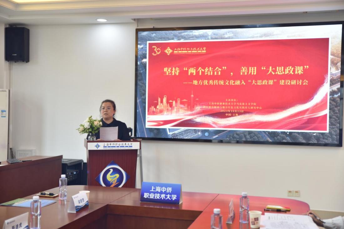 为深入学习贯彻党的二十大精神,深刻领悟和不断推进“两个结合”,将习近平文化思想贯穿落实到“大思政课”建设的各方面和全过程,10月13日,在学校30周年校庆到来之际,上海中侨职业技术大学马克思主义学院和伟大建党精神与地方红色文化实践育人研究中心在图文信息楼518会议室联合主办了“坚持‘两个结合’,善用‘大思政课’——地方优秀传统文化融入高校‘大思政课’建设”专题研讨会。会议得到了上海市教科院的大力支持,业内专家学者的悉心指导,兄弟院校的积极响应。