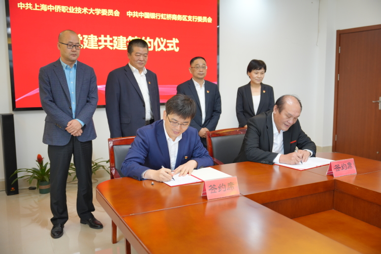 上海中侨职业技术大学党委书记与中国银行虹桥商务区支行行长共同签订了党建共建活动协议。双方共同表示,将共同推动党建共建合作、共同推进校友场景合作创新、共同推进师生全流程金融服务提升、共同推动学校人才建设等方面,加深双方合作。