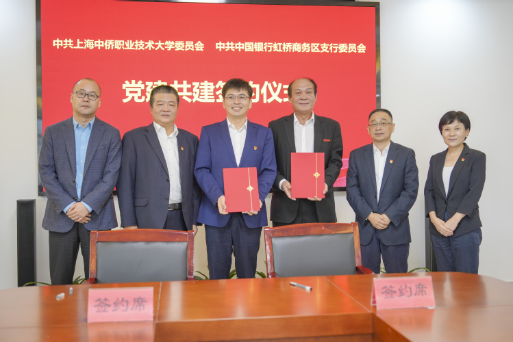 上海中侨职业技术大学党委书记与中国银行虹桥商务区支行行长共同签订了党建共建活动协议。双方共同表示,将共同推动党建共建合作、共同推进校友场景合作创新、共同推进师生全流程金融服务提升、共同推动学校人才建设等方面,加深双方合作。
