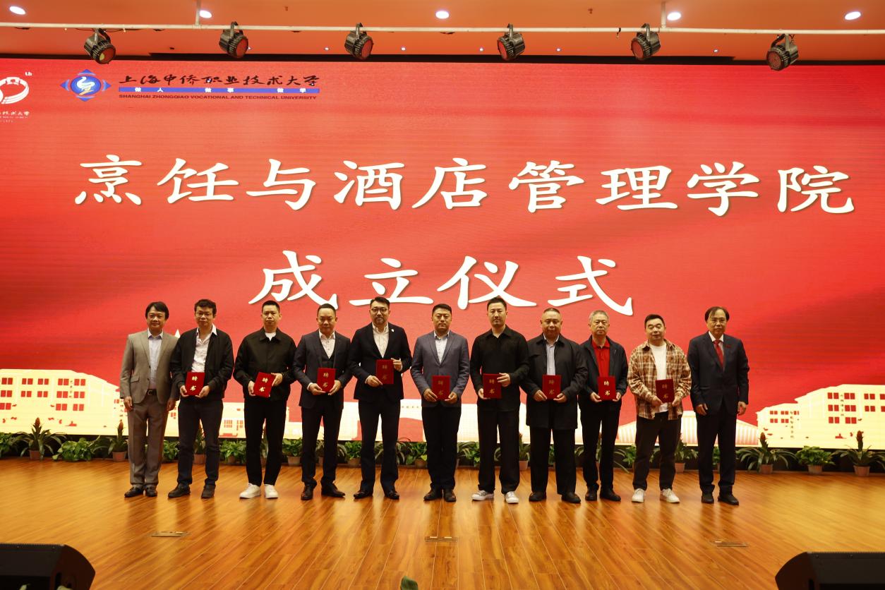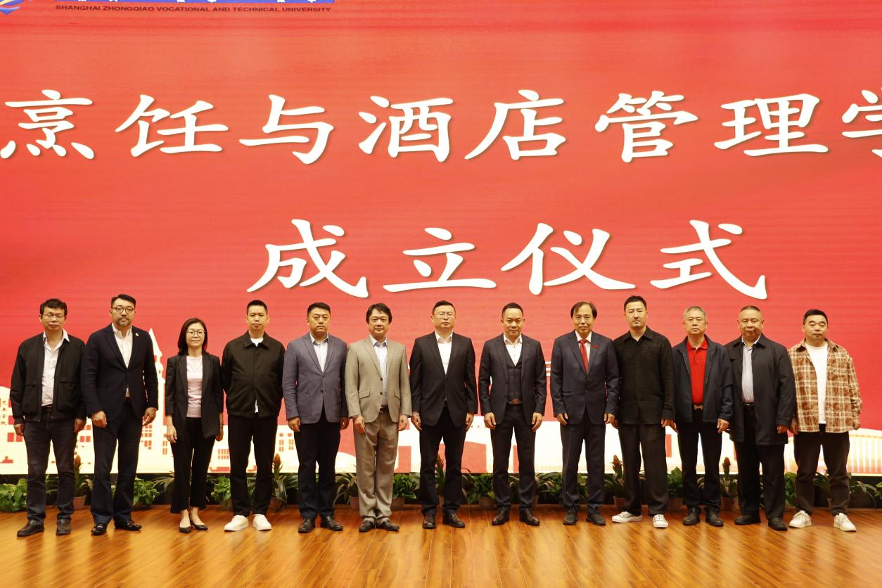 为此,上海中侨职业大学校长霍佳震先生莅临指导,烹饪与酒店管理学院院长周晓燕主持仪式,同时,我们还邀请到了上海市职业技能鉴定中心主任李晔先生,上海浦江汇餐饮集团有限公司董事长周家豪先生,上海市烹饪餐饮行业协会副秘书长、上海东湖集团世界会客厅总经理施一斌先生,上海逸道餐饮有限公司董事长田小文先生,子福慧餐饮集团董事长周子洋先生,中国烹饪协会总厨委员会秘书长朱丽林女士,彼途教育科技总裁、上海工商职业技术学院PICH现代服务学院院长、上海市高等院校海外交流联谊会秘书长孙云立先生,世界厨师联合会中国青年委员会主席、教育部餐饮职业教育教学指导委员会教师发展专委会委员、上海师范大学旅游学院西餐专业主任李双琦先生,上海中心J酒店天之锦行政主厨沈荣先生,浦东香格里拉行政主厨高晓升先生,上海金茂君悦大酒店行政总厨冷耀斌先生,上海市金山区餐饮协会会长徐卫中先生,上海食品科技学校现代培训中心校长张江先生,烹饪与酒店管理学院及食品药品学院师生于上午10:00在图文楼二楼会议室进行成立仪式。